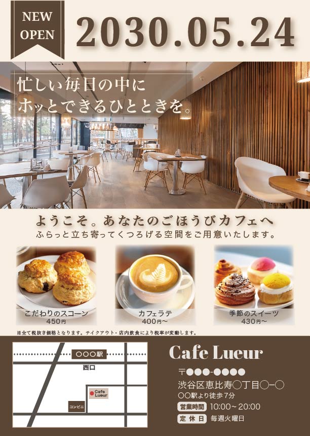 ターゲット設計から行った新規オープンカフェのチラシデザイン
